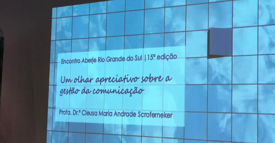 No dia 12/11 no prédio 41 da PUCRS, aconteceu a palestra mediada pela Profa Drª. Cleusa Scroferneker, coordenadora do GEACOR. O tema do evento foi "Um olhar apreciativo sobre a gestão da comunicação", sendo uma manhã hands on com impacto imediato sobre nas práticas profissionais.